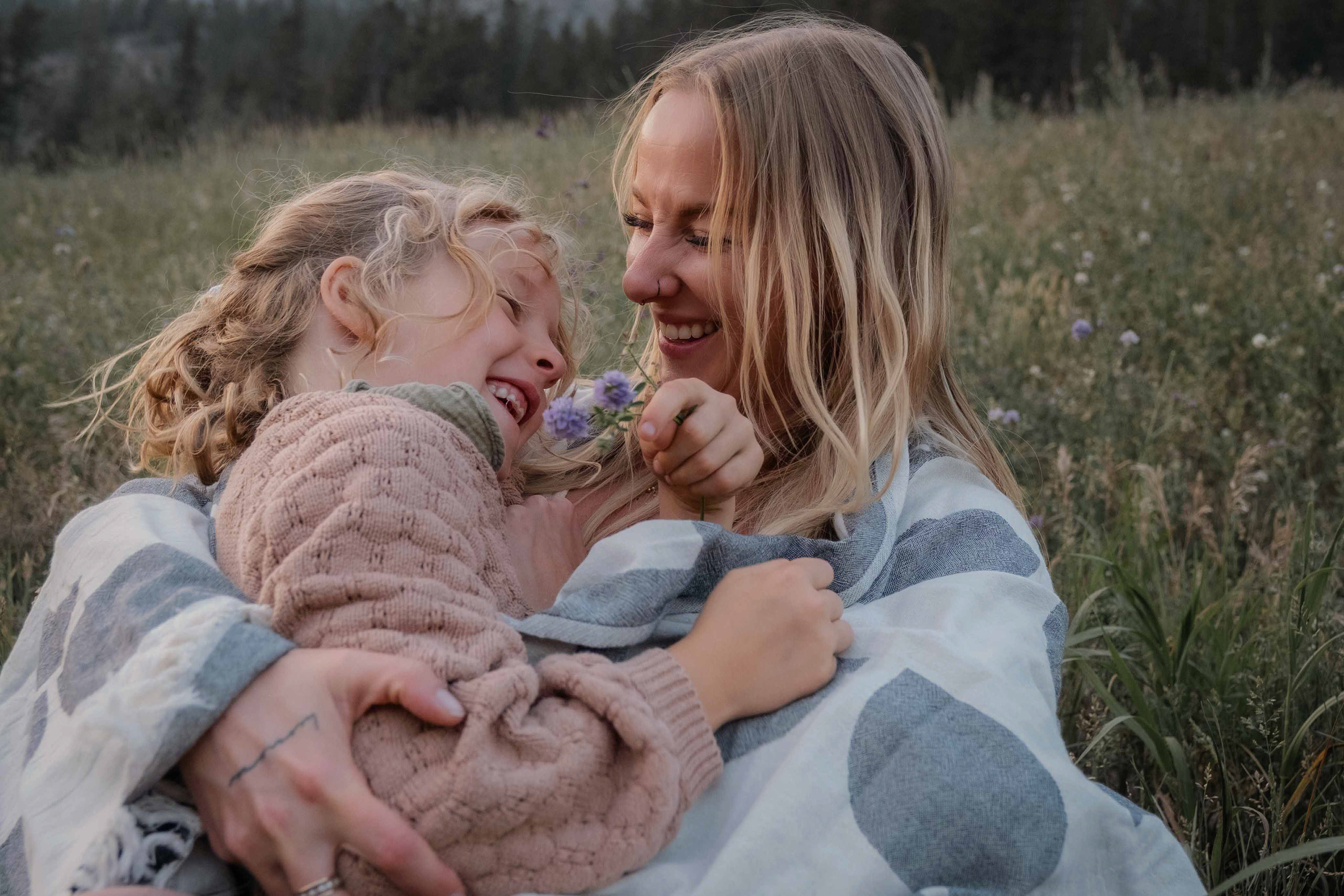 Golden light, soft wind and laughter between a mother and her daughter.